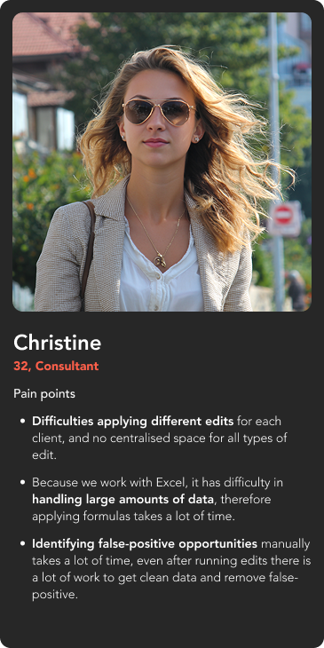 Dealing with very large amount of raw data, in one immense excel file, that needed to be analysed, filtered and processed by multiple users at the same time, in various ways. Overlapping work, no real time progress tracking, no pre-structured data